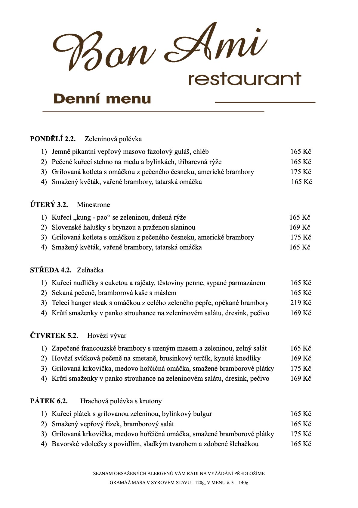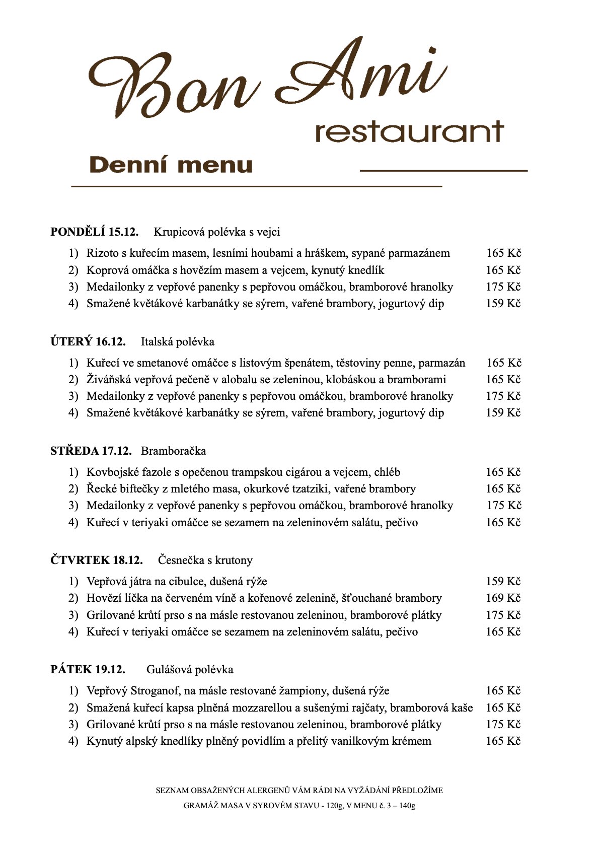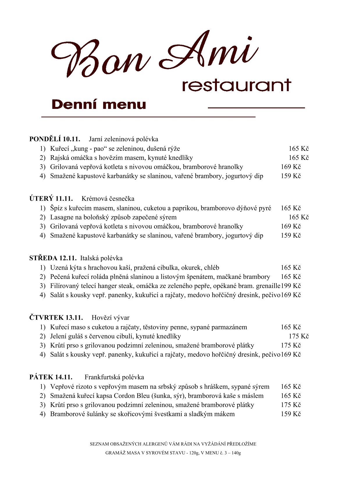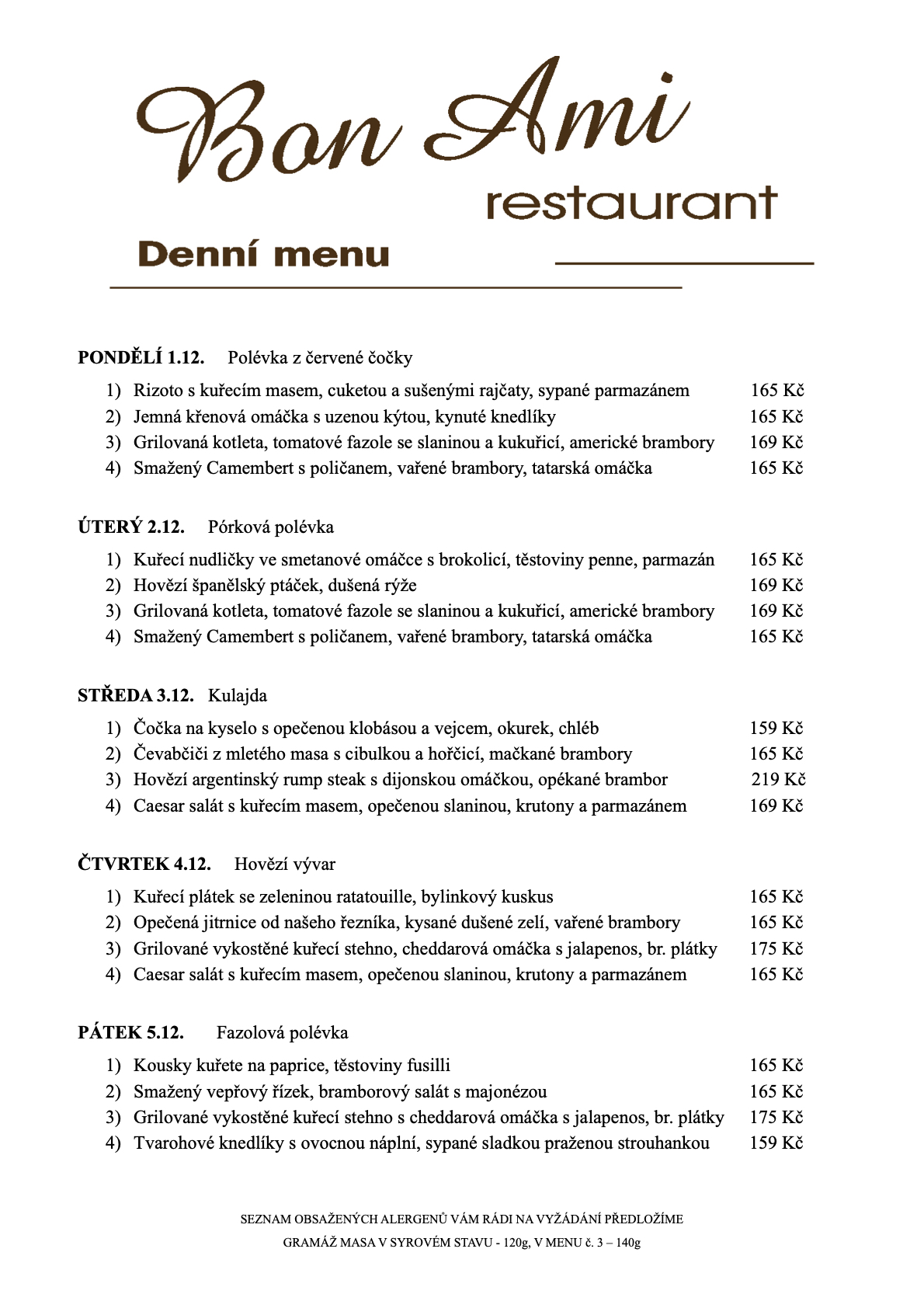 Vítejte v Bon Ami Restaurant, místě, kde se snoubí poctivá domácí kuchyně s láskou ke gastronomii. U nás si pochutnáte na pečlivě připravených jídlech z čerstvých surovin, které vám naservírujeme s úsměvem.