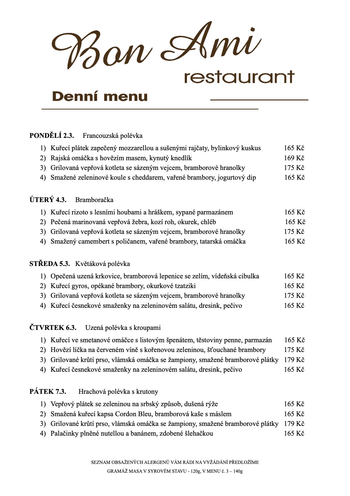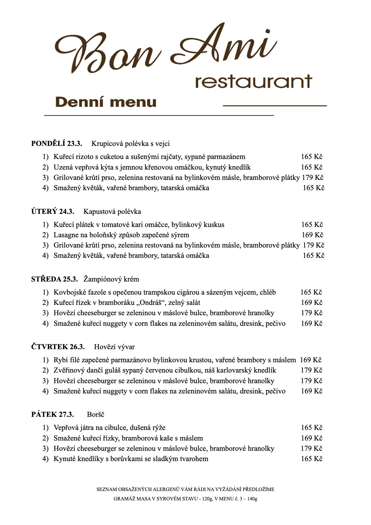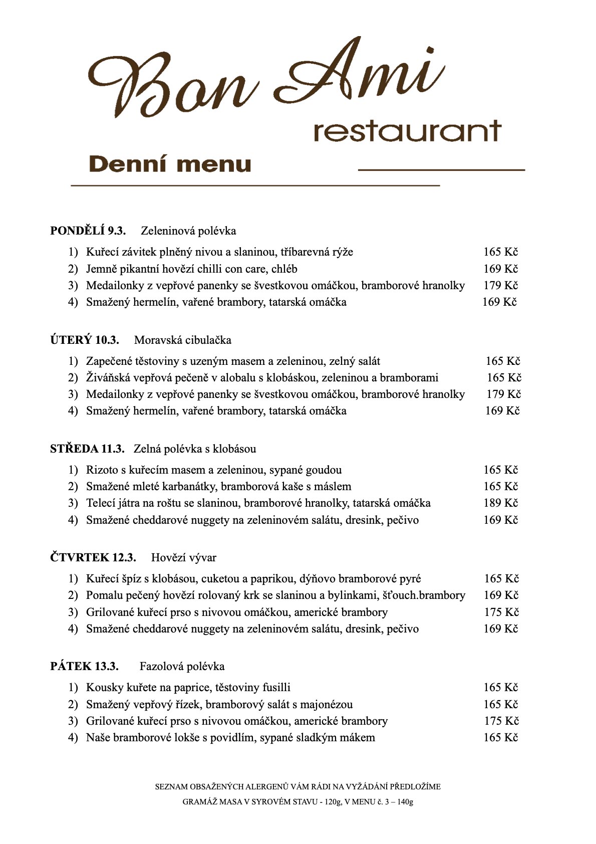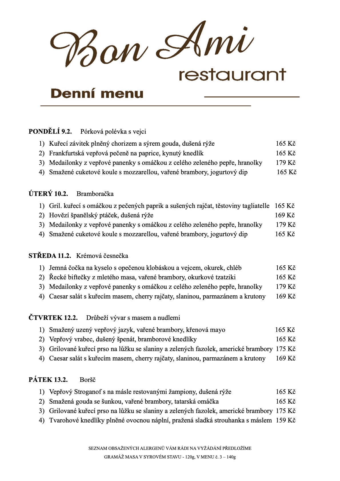 Vítejte v Bon Ami Restaurant, místě, kde se snoubí poctivá domácí kuchyně s láskou ke gastronomii. U nás si pochutnáte na pečlivě připravených jídlech z čerstvých surovin, které vám naservírujeme s úsměvem.
